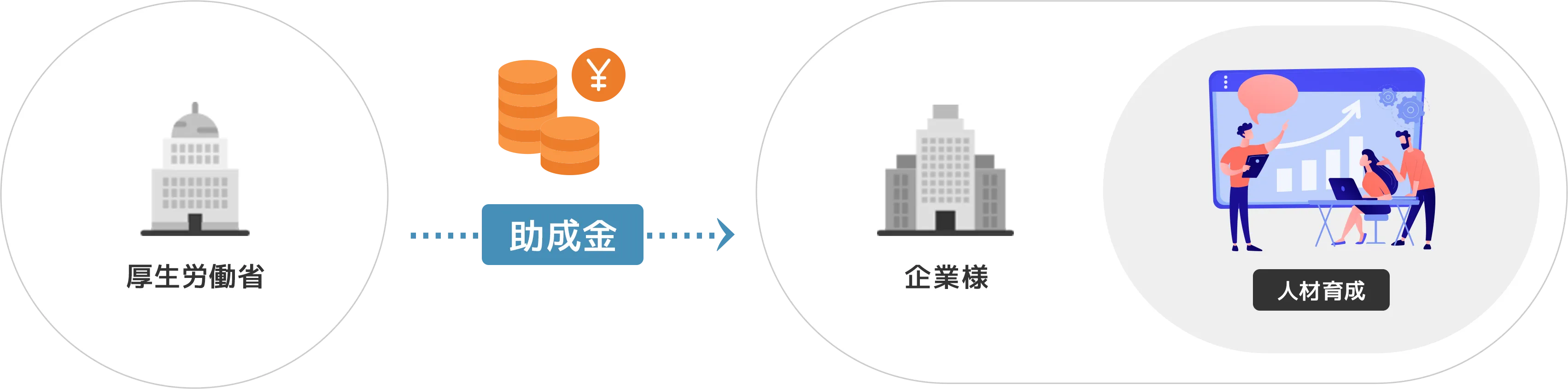 人材開発支援助成金は、企業様が雇用する労働者に対して、職務に関連した専門的な知識及び技能を習得させるための職業訓練等を計画に沿って実施した場合等に、訓練経費や訓練期間中の賃金の一部等を助成する制度です。
